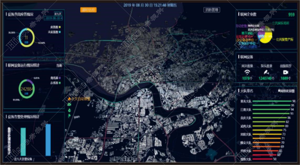 2.大屏显示系统通过连接分布式可视化管控系统的分布式节点实现图像在大屏上的高清显示、图像开窗叠加、跨屏拼接、画面漫游等显示模式;
